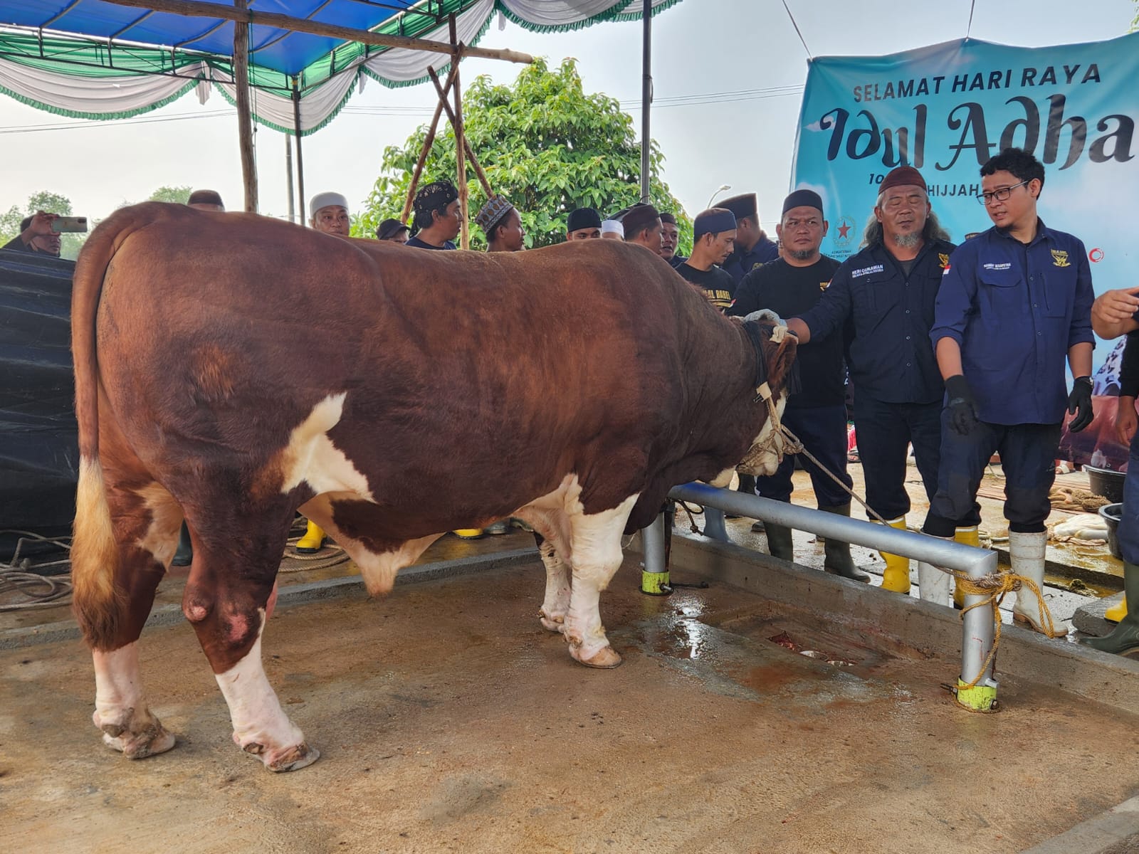 Sapi dengan berat 1 ton 17 kg itu diterima langsung oleh Pj Wali Kota Pangkalpinang, Unu Ibnudin yang kemudian dilanjutkan ke panitia kurban Masjid Agung Kubah Timah.