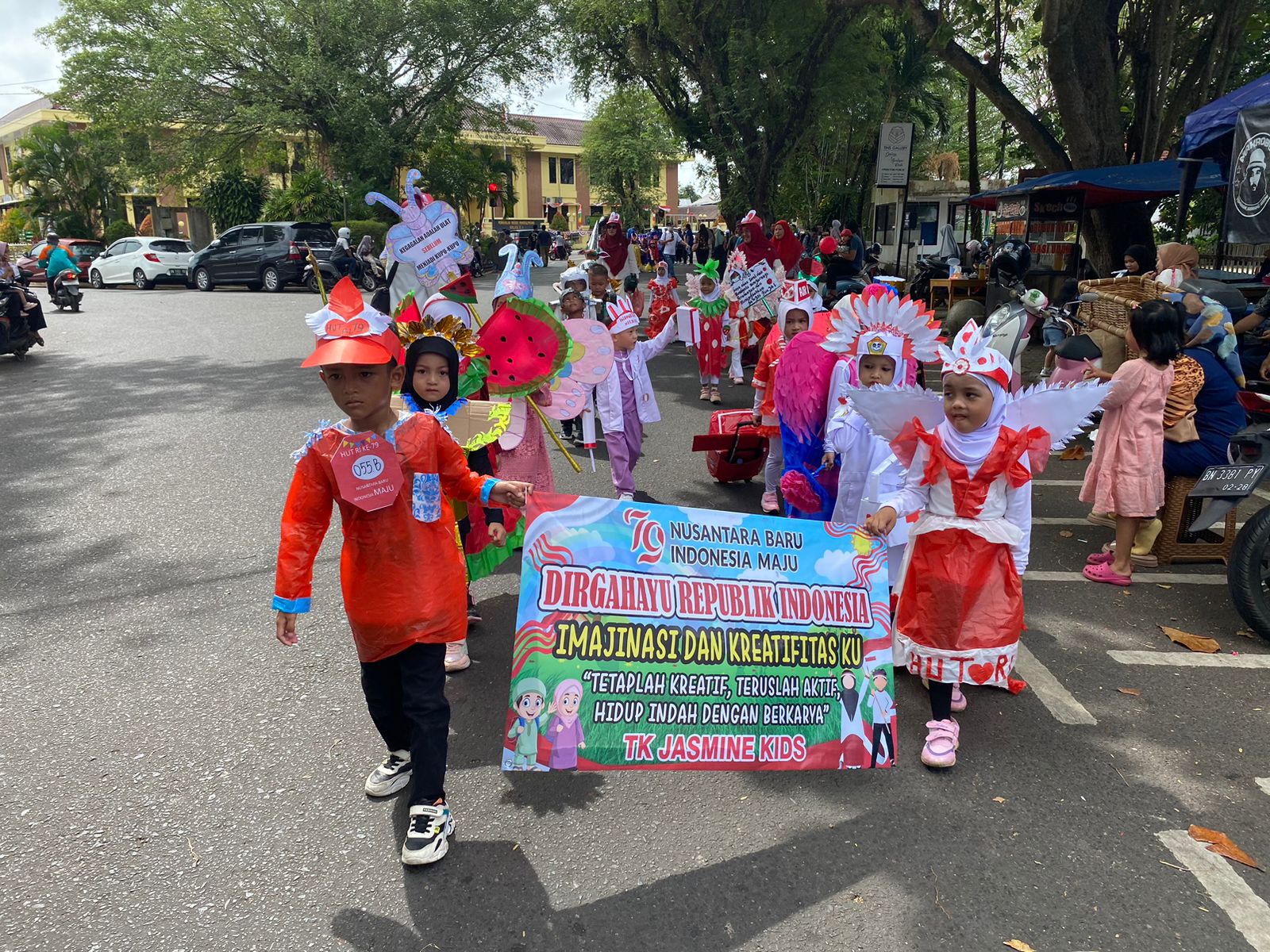 INTRIK.ID, PANGKALPINANG — TK Jasmine Kids ikut ambil bagian dalam kegiatan karnaval yang diselenggarakan oleh Pemerintah Kota Pangkalpinang, Kamis (22/8/2024).